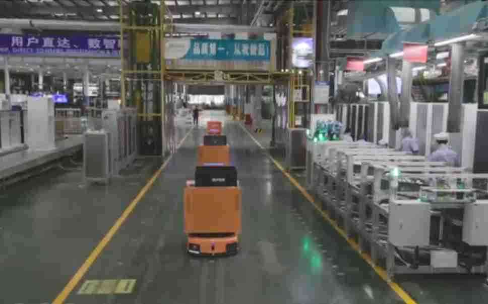 为车载冰箱物流配送打造的智能解决方案,,包含产中物流通过潜伏举升AMR搬运至线边,,,产后成品物流智能仓储,,流程包含产中物流智能齐套入库,,线边安灯叫料AMR智能配送至线边,,,,成品入库、、出库,,,通过无人堆高车机器人,,,,智能仓储管理替代人工作业管理,,,,实现更高存储、、更高效率、、、更具柔性化的解决方案。。